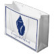 Elegant blue seashell silhouette and thin blue script saying "Congratulations" large gift bag.