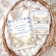 A refined dusty blue hydrangea design framed in an elegant baroque-inspired composition. Voluminous hydrangea clusters in soft powder and periwinkle tones are paired with creamy ivory florals and muted sage greenery, creating a balanced, symmetrical garden frame. The warm parchment-style background adds a subtle antique touch while keeping the overall look airy and sophisticated. Ideal for a timeless celebration with a romantic, elevated aesthetic.