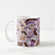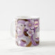 This coffee mug showcases a chic and refreshing design that highlights coffee-themed artistry with flowers and ribbons. The pattern includes steaming coffee cups and coffee beans, all elegantly arranged on a soft lavender background with subtle striped textures. Accentuating the design are luxurious golden and lavender ribbons, creating a sense of sophistication and charm. At the centre, a monogram enclosed in a lavender-framed emblem can be personalised with initials, making this mug an ideal choice for a customised gift or a stylish addition to a coffee lover’s collection.