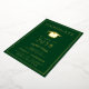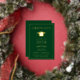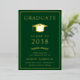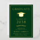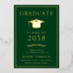Elegant green college graduation announcement featuring your choice of real gold or silver foil, a grad cap and the graduate's name, class year, school, degree and major or honours.