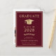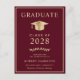 Elegant burgundy red college graduation announcement postcard featuring a gold graduation cap and modern gold typography for the graduate's name, class year, college or university, degree and major or honours. On the reverse side, add a photo and personalise a message, or leave blank.