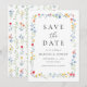 Set the tone for your upcoming wedding with this floral save the date card, featuring a watercolor frame of blooming wildflowers in shades of pink, yellow, orange, and blue with delicate greenery surrounding the couple’s names, wedding date, and location. The soft botanical border adds a romantic and timeless feel while keeping the design light, airy, and easy to read. Perfect for garden weddings, spring and summer weddings, and couples who love elegant floral stationery, this save the date creates a warm and inviting first impression. Personalize the design with your names, date, and location to create a charming announcement that coordinates seamlessly with matching wedding invitations and stationery.