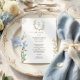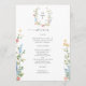 Elevate your reception tables with this romantic wildflower wedding menu card. Featuring a delicate watercolor floral monogram at the top and soft blush, blue, and golden blooms along the sides, this design brings timeless garden elegance to your place settings.
