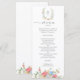 Elevate your reception tables with this romantic wildflower wedding menu card. Featuring a delicate watercolor floral monogram at the top and soft blush, blue, and golden blooms along the bottom, this design brings timeless garden elegance to your place settings.