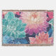 Elegant Colourful Dahlia Flowers on Dark Backgroun Throw Blanket