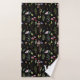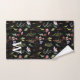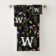 elegant colourful floral personalised monogram bath towel set, black background colourful flowers custom bath towel set,