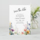 This elegant, colourful watercolor wildflowers wedding 'Save the Date' card showcases a stunning array of flowers in shades of purple, orange, yellow, and red. It features modern typography and offers full customisation options for your names, wedding details, and a QR code linking to your wedding website. The formal design and wording add a touch of elegance to your wedding celebration. This design is especially suited for weddings in the Spring and Summer seasons.