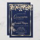 Elegant Confetti Balloons Navy Blue Quinceañera Invitation