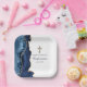 Elegant Confirmation Cross Navy Blue Gold Agate Paper Plate