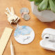 A key chain with a beautiful icy blue agate design with faux gold glitter accents.