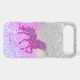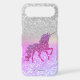Elegant glitter unicorn on silver violet glitter bokeh.