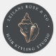 Label your business correspondence or products with these chic stickers that match our Conch Shell logo branding suite for hairstylists, salons or any beach-based or island business. Rich soft black stickers feature a faux copper foil conch seashell illustration in the center, with two text fields curving around the outside, in classic white lettering.