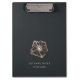 Island chic personalised clipboard features two lines of custom text in classic white lettering, on a rich soft black background adorned with a tropical hibiscus flower illustration in faux copper foil. Design repeats on reverse side. Add your name or business name to this elegant clipboard with a modern beach vibe.