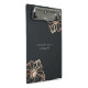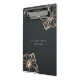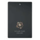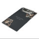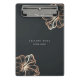 Island chic personalised clipboard features two lines of custom text in classic white lettering, on a soft black background adorned with a tropical hibiscus flower illustration in faux copper foil. Reverse side shows a variation on the design with a smaller flower and your custom text. Please note that this clipboard is a mini size; full size version also available in our Hibiscus collection.