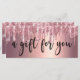This gorgeous gift certificate design features faux pink & copper rose gold dripping glitter metallic texture and elegant calligraphy font.