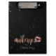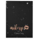 Stylish and modern makeup design featuring faux copper rose gold makeup text and lips, black marble texture.
