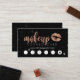 Stylish and modern makeup design featuring faux copper rose gold makeup text and lips, black marble texture.
