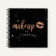 Stylish and modern makeup design featuring faux copper rose gold makeup text and lips, black marble texture.