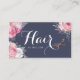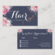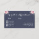 Modern and elegant appointment card for hairstylists with faux copper rose gold scissors, pink and white roses and elegant calligraphy font.