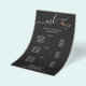 Modern and elegant price list for hairstylists with faux copper rose gold scissors, black background and elegant calligraphy font.