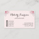 Modern and elegant loyalty card for hairstylists with faux copper rose gold scissors, pink and white roses and elegant calligraphy font.