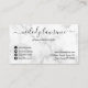 Modern and elegant loyalty card for hairstylists with faux copper rose gold scissors, white marble background and elegant calligraphy font.