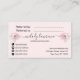 Modern and elegant referral card for hairstylists with faux copper rose gold scissors, pink and white roses and elegant calligraphy font.