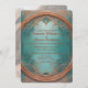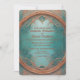 Set the tone for your special day with the "Elegant Copper Turquoise" wedding invitation, a design that exudes timeless sophistication. This invitation features a luxurious turquoise backdrop enhanced with intricate copper detailing, creating a harmonious blend of elegance and charm. Perfect for couples seeking a classic and refined style, the design is ideal for both traditional and modern weddings. The back of the invitation offers the option to include a photo of the couple, adding a personal and meaningful touch. Fully customisable for text and photo, this invitation allows you to tailor every detail to your wedding vision. Designed using advanced AI technology, the "Elegant Copper Turquoise" invitation brings together a modern touch and classic beauty to ensure your wedding is unforgettable.