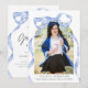 Elegant Coquette Blue Bow Photo Graduation Party Invitation.