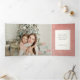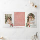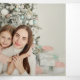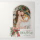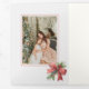 This charming holiday greeting features an elegant arch shaped photo template with thin pink border, sweet watercolor blush pink and ecru coquette style bow with holly and winter greenery and custom Merry Christmas text graphic in coordinating pink and sage green colours. The panels feature additional text fields, complementary bow with greenery and background pattern as well as two additional photo templates.