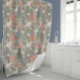 Elegant Coral Blue Green Floral Patten Shower Curtain