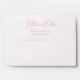 This wedding envelope features a minimalist design with elegant, flowing cursive typography for the names and straightforward serif text for the address. The muted coral pink colour palette adds a touch of romance and sophistication, making it perfect for formal events or announcements. With ample negative space around the text, the layout emphasises clarity and readability while maintaining an understated elegance. Ideal for couples looking to add a personal yet refined touch to their wedding stationery, this design is both modern and timeless.