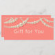 Give the gift of style with this elegant coral and pearl-themed gift certificate, perfect for salons, spas, boutiques or any business that values a touch of sophistication. Featuring a rich coral background and delicate pearl accents, this customisable certificate is ideal for birthdays, holidays, thank you gifts, or special occasions. Personalise it with your business name and details for a polished and professional presentation.