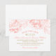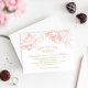 Soft and romantic, this no-photo save the date features a large-scale coral peony line art illustration across the top on a white background with coordinating coral and gold typography. The refined botanical aesthetic suits spring, garden, or summer celebrations beautifully. All text is fully customisable.
