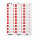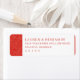 This return address label features a minimalist design with a clean, modern aesthetic. The layout is vertically orientated, showcasing a vibrant coral red border with intricate swirling patterns that add depth and movement. Central text is presented in an elegant serif font, offering customisable options for personalisation while maintaining clarity and formality. The overall mood is sophisticated and inviting, making it perfect for formal invitations or announcements.