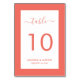 Elegant Coral Wedding Table Number
