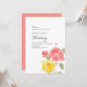 Hand-painted watercolor floral wedding invitation in coral and yellow tones, designed by me.