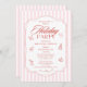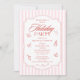 Elegant Corporate Christmas Company Holiday Party Invitations feature simple whimsical red Christmas elements on a pink and white striped background with the text "Holiday Party" in elegant red calligraphy script typography. Stylish, trendy and chic for your corporate Holiday Party. Created by Evco Studio www.zazzle.com/store/evcostudio