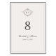 An elegant country-style wedding table number featuring a refined monogram crest and timeless typography. This classic design can be easily personalized with your names and wedding date, adding a sophisticated touch to your reception tables and wedding décor.