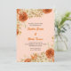 The focal point of this invitation is the meticulously crafted floral border featuring a rich interplay of orange roses, delicate white flowers, and verdant greenery. This combination exudes both rustic charm and timeless elegance, creating a visual symphony that resonates with the beauty of nature.