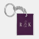 personalised wedding keychain featuring elegant light beige initials on a rich dark purple background. Perfect for couples,