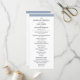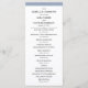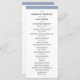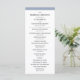 This elegant, stylish wedding program features chic black text on a white background, bordered in dusty blue.