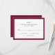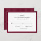 These elegant, stylish wedding RSVP cards feature chic black text on a white background, bordered in marsala.