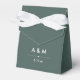 This elegant, minimalist rich forest green wedding favour features modern white text on a rich, forest green background.