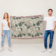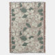 Elegant Cream Beige & Green Illustrated Floral Throw Blanket