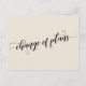 This simple card allows you to choose your background colour (if you even want a change!) while enjoying this gorgeous font. The front reads "change of plans" using a pretty script with swirls and waves. The back includes template placeholders for your details with matching accent words featuring the calligraphy font. Use these template fields to add your personal details and change my draught wording to suit your needs and situation. // 99 //