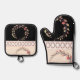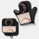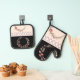 Elegant cream rose clay and black oven mitt & pot holder set