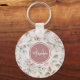 Elegant Cream Roses Floral Monogram and Name Key Ring
