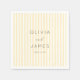 These wedding napkins feature a sophisticated design with alternating cream and pale yellow vertical stripes, creating an elegant and understated background. The typography is the focal point, showcasing bold uppercase letters for names and a smaller cursive script for "and," all in a classic serif font that adds timeless charm. The overall style is minimalist and refined, perfect for formal occasions, conveying a mood of calm sophistication. Ideal for weddings or special celebrations, these napkins offer customizable options to personalize your event while maintaining a clean and inviting aesthetic.