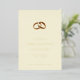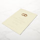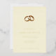 This elegant wedding invitation features a minimalist layout with a cream-coloured background, creating a soft and inviting atmosphere. The design includes two interlocking gold wedding rings at the top centre, adding a touch of sophistication. Below the rings, customisable text is presented in a clean serif font hierarchy, guiding the eye through the event details. The overall style is classic and understated, perfect for conveying warmth and timeless elegance, making it ideal for formal celebrations.